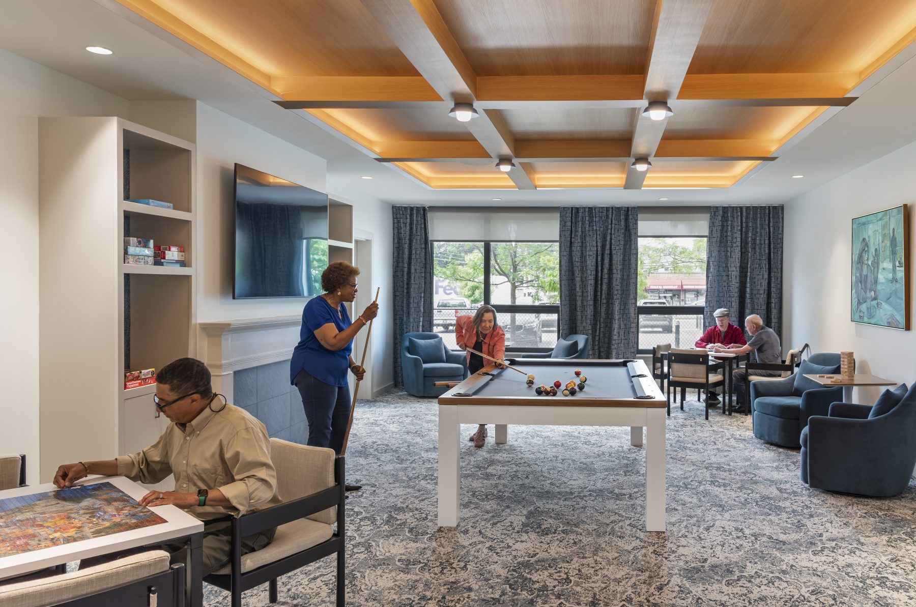 The building’s ground floor “Village Center” serves as a 5,600 SF vibrant hub for fitness, art, dining, wellness programming and social connection, actively addressing senior isolation with the goal of improving and extending quality of life. Located next to the Waltham Senior Center and near public transit, grocery stores and healthcare services, Leland House is embedded in a walkable, accessible neighborhood that supports day-to-day independence and community belonging.